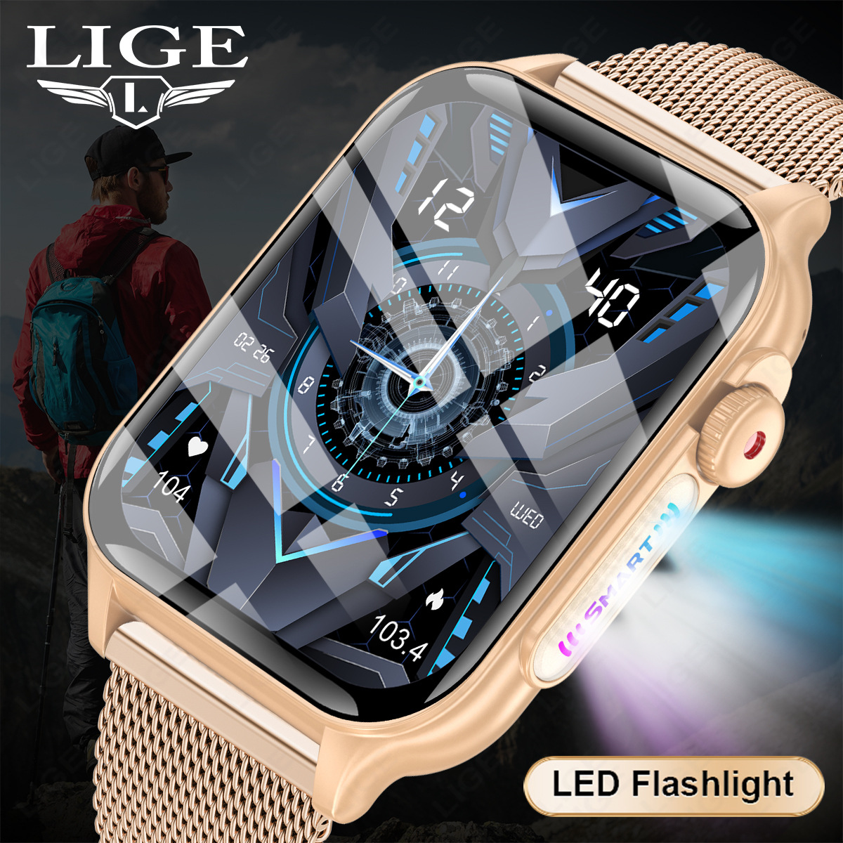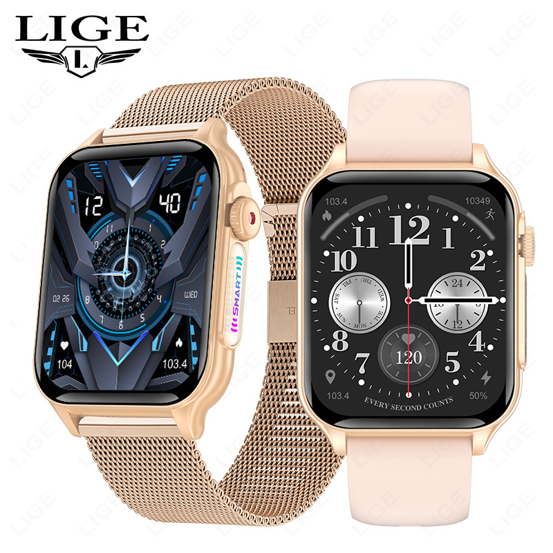 LIGE New Bluetooth call heart rate blood oxygen 8 kinds of light effect weather music multi-function multi-sport smart watch Golden
